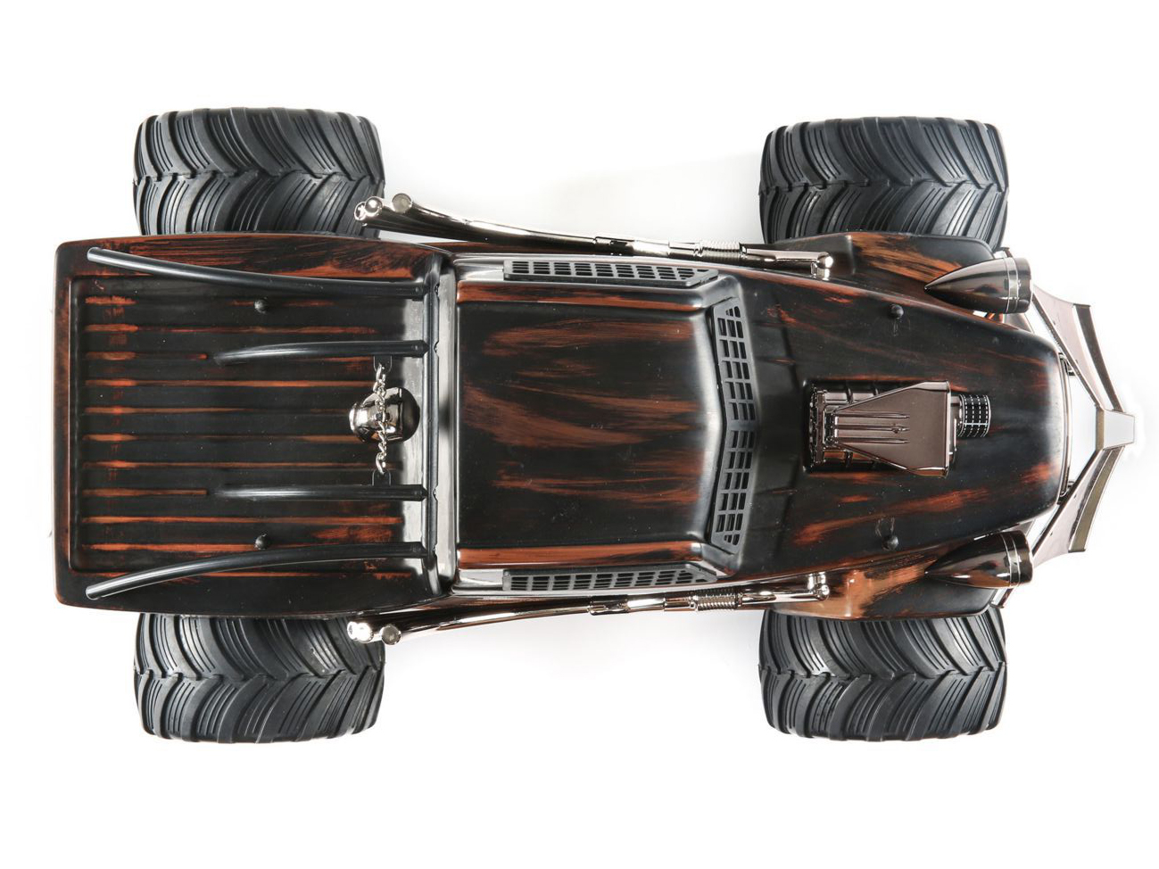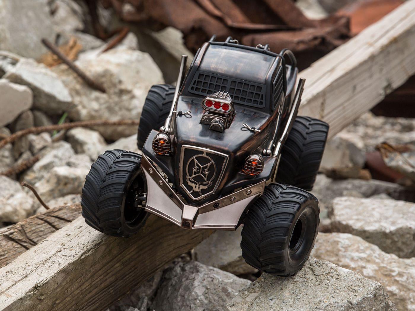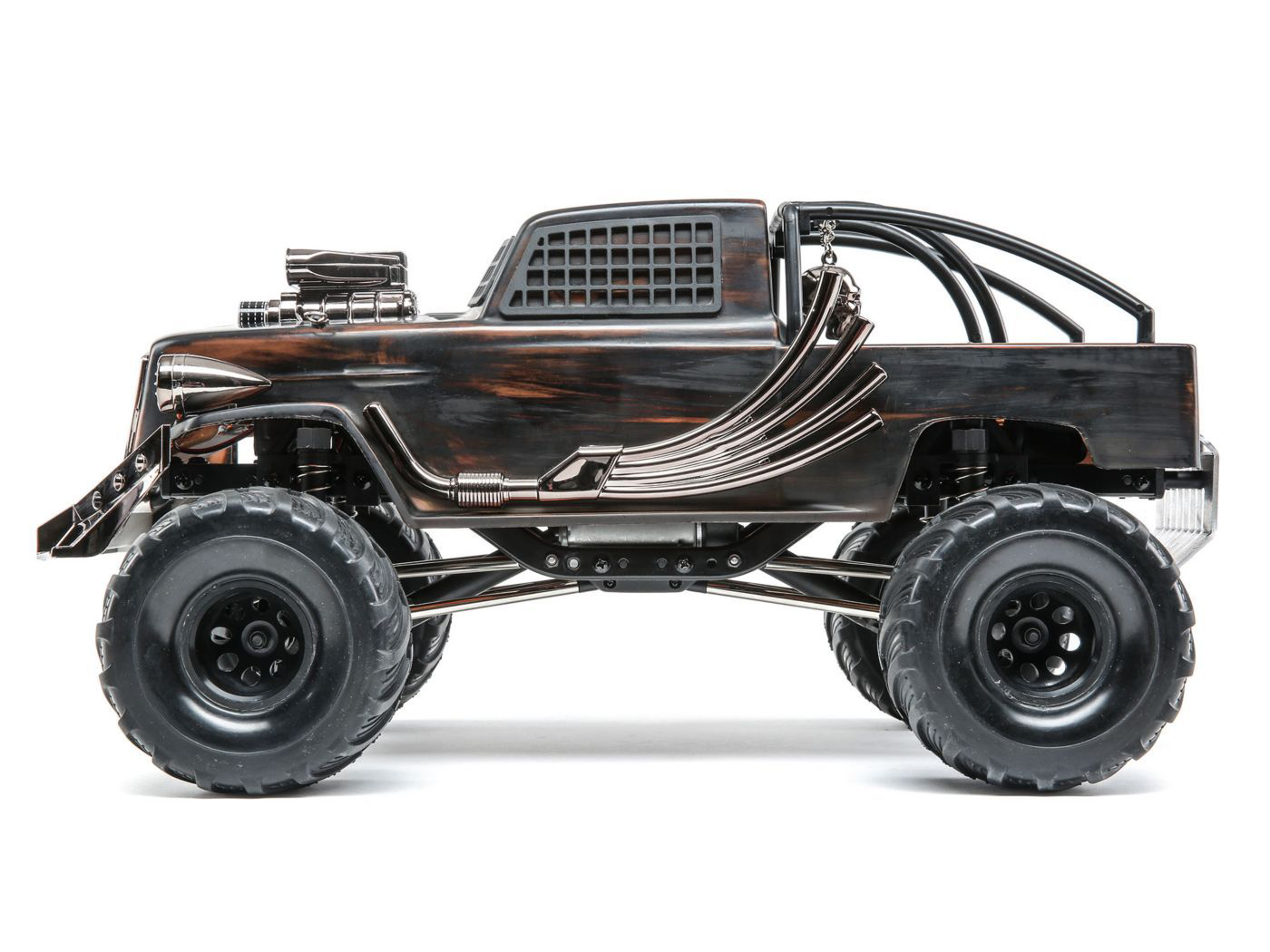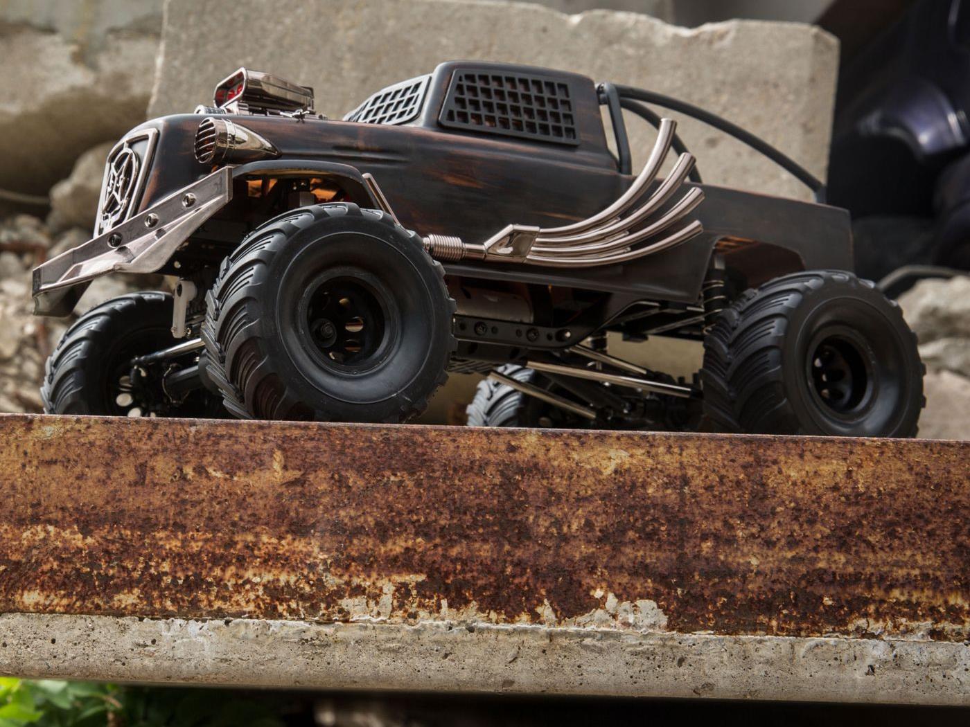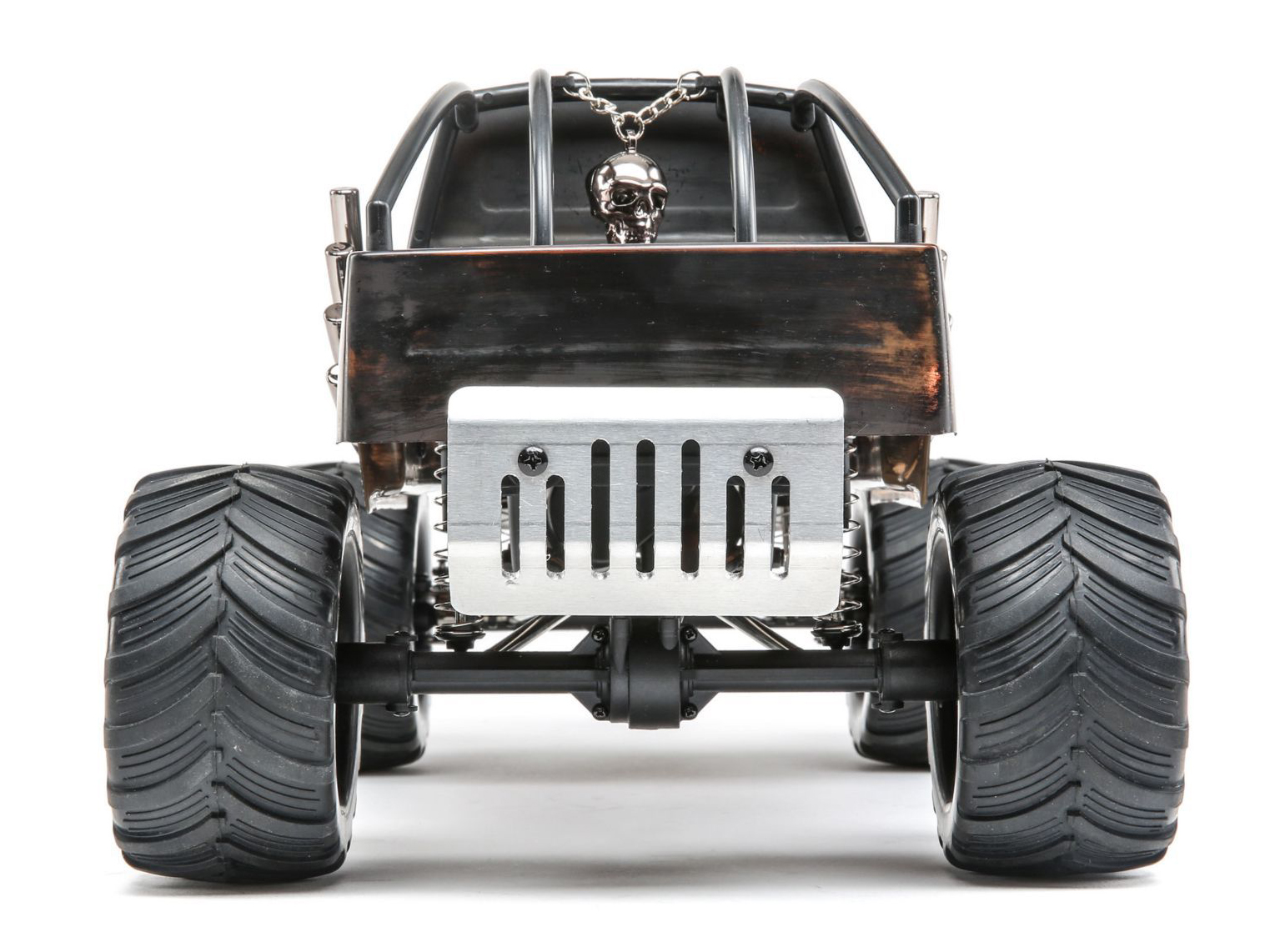 Taking its cue from the impressive ECX® Barrage®, the ECX® 4WD Barrage Doomsday™ commands your attention and seals the deal with incredible features such as 4WD drive train, 4-link suspension, high torque 390-size motor, waterproof electronics, scale monster truck wheels and tires, and a post apocalypse style body with LEDs. With the Barrage Doomsday, you get a level of realism unmatched by other similarly priced vehicles. New drivers will love the incredible patina finish, composite roll cage, engine, exhaust, and LED lights. This virtually indestructible vehicle can go anywhere including tall grass, woods, mud, as well as your neighborhood creek and can clear rocks easily. Plus, you get all of this excitement without breaking your budget or your drive train.