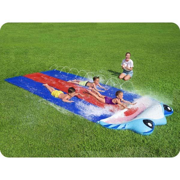 Bestway 52390 Sharky Triple Water Slide is easy to set up and lots of fun for the kids!