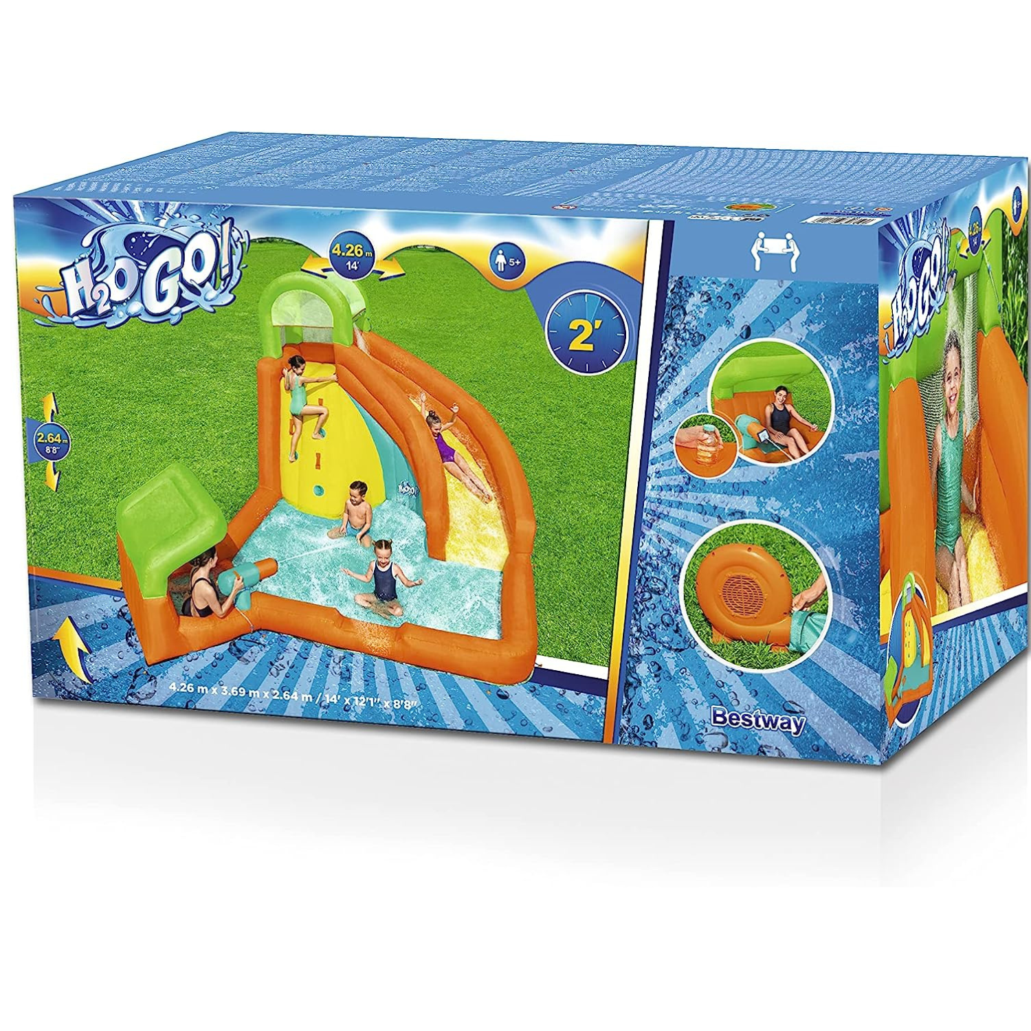 Bestway 53436 Water Slide Climbing Wall Canopy Cove Mega Water Park features: