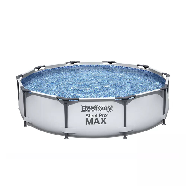 This Bestway 56406 10Ft Steel Pro Frame Pool comes with triple strength heavy gauge PVC side walls with separate laminated band providing additional wall support and reinforced rope to keep legs firmly in position.