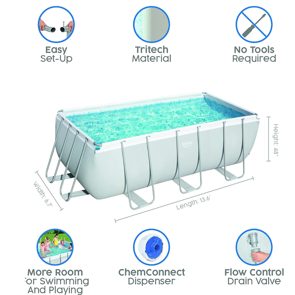 Bestway 56456 13ft 6 inch Power Steel Rectangular Swimming Pool Set is ideal to relax and have fun in your garden during warmer months.