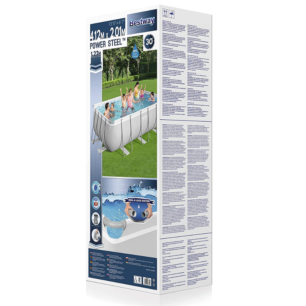 The Bestway 56456 Power Steel Rectangular Swimming Pool Set has been designed and manufactured using highly developed materials selected to provide a durable and stable pool that will last in time.