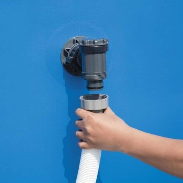 Included with the Bestway 1500gal Filter Pump is 2 hoses that are attached to two different points on the pool; one end of the hose is connected to the inlet point and the other end is attached the outlet point.