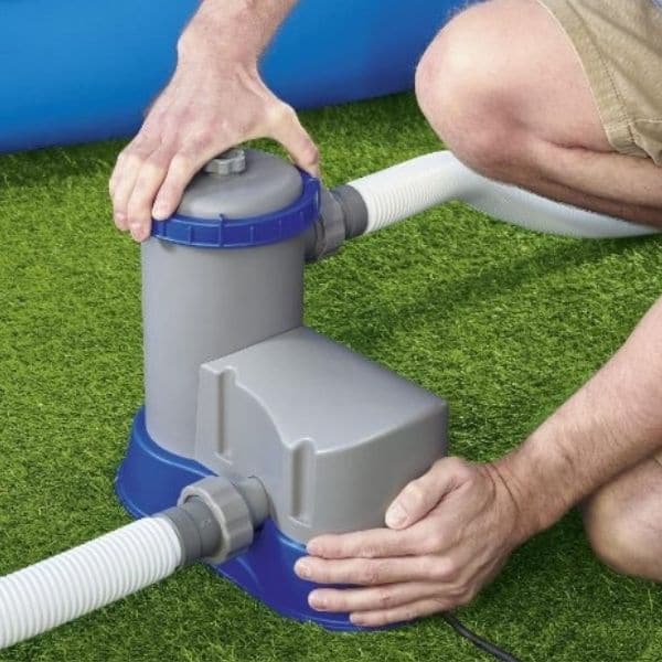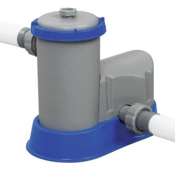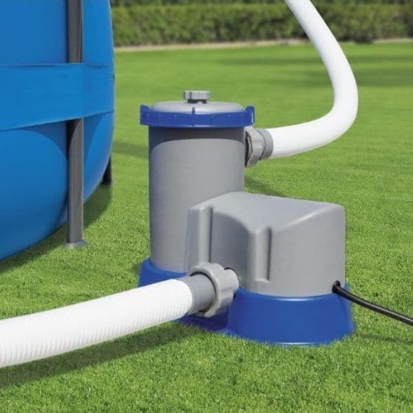 Complete with a 4.2in x 8in Filter Cartridge and both hoses, you can start to use the Bestway 1500gal Filter Pump immediately. It is recommended that in the warmer months when you will be using your pool on a daily basis that you change the filter cartridge at least every two weeks.