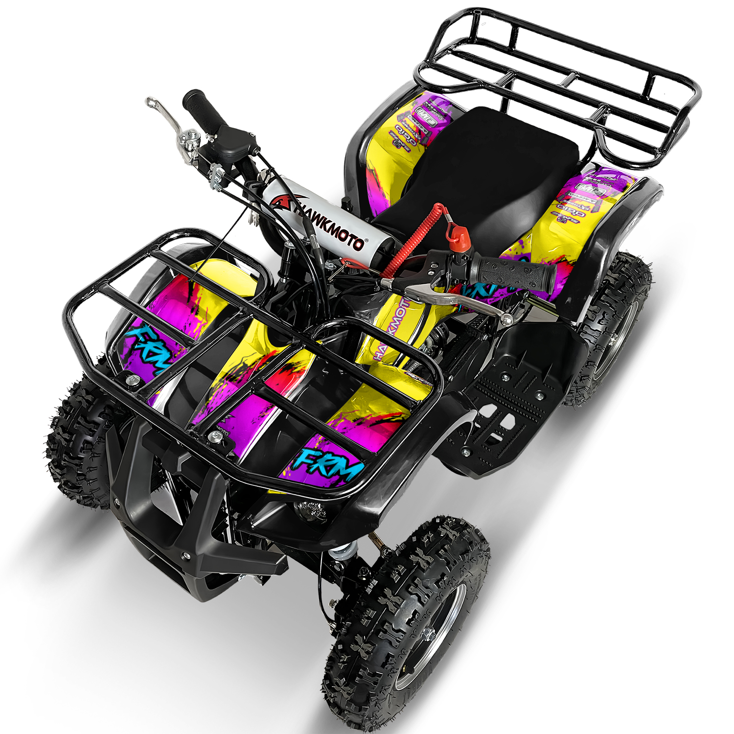 The 2024 Hawkmoto Farm Style 49cc / 50cc V2 Mini Quad Bike For Kids is here, with new upgraded features and uniquely designed graphics kits!