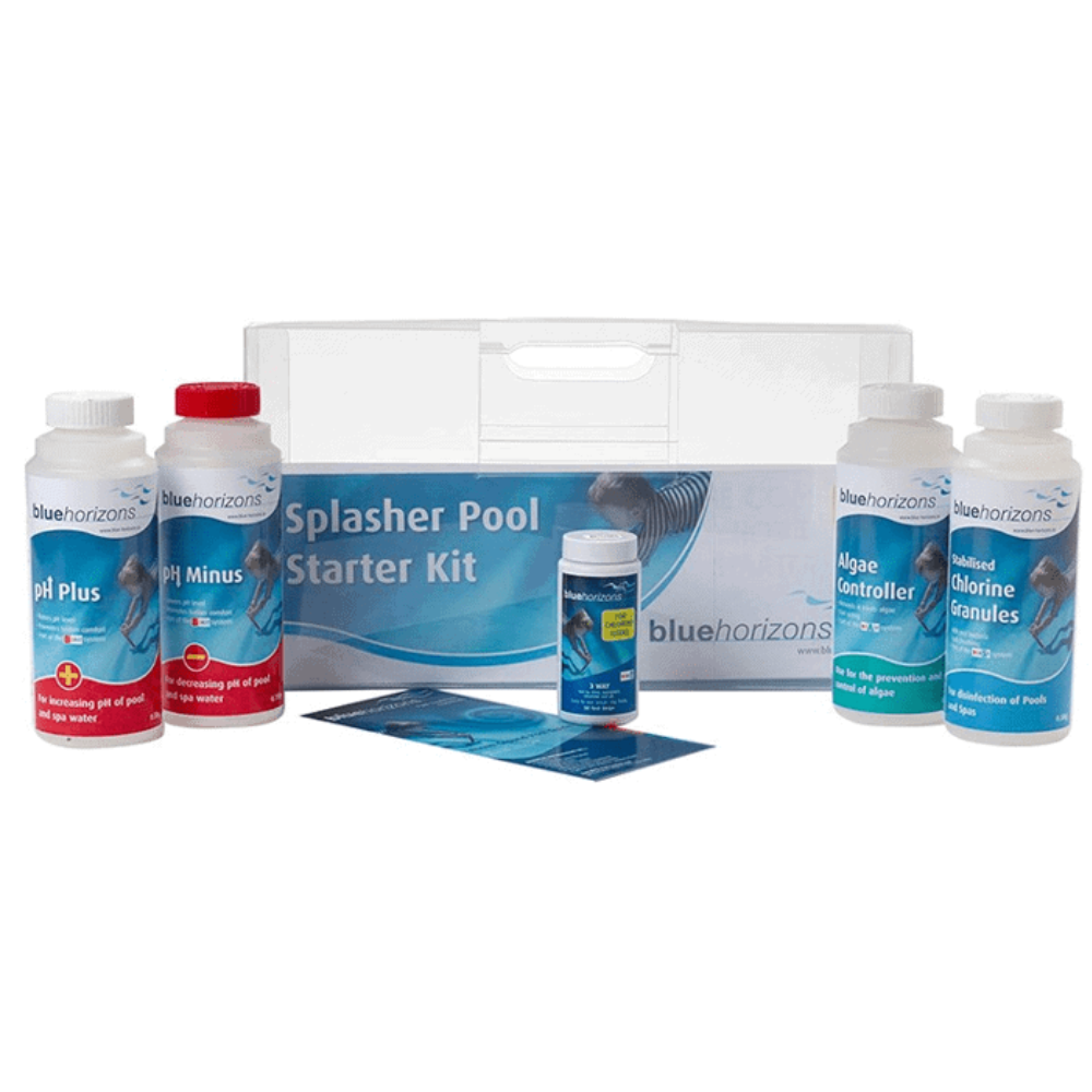 The Blue Horizons Pool Starter Kit is a great piece of kit that gets your pool ready for use straightaway. This range of water treatment is great for above ground pools up to 24ft. Included is a handy guide that explains how to use the chemicals on your pool safely and efficiently.