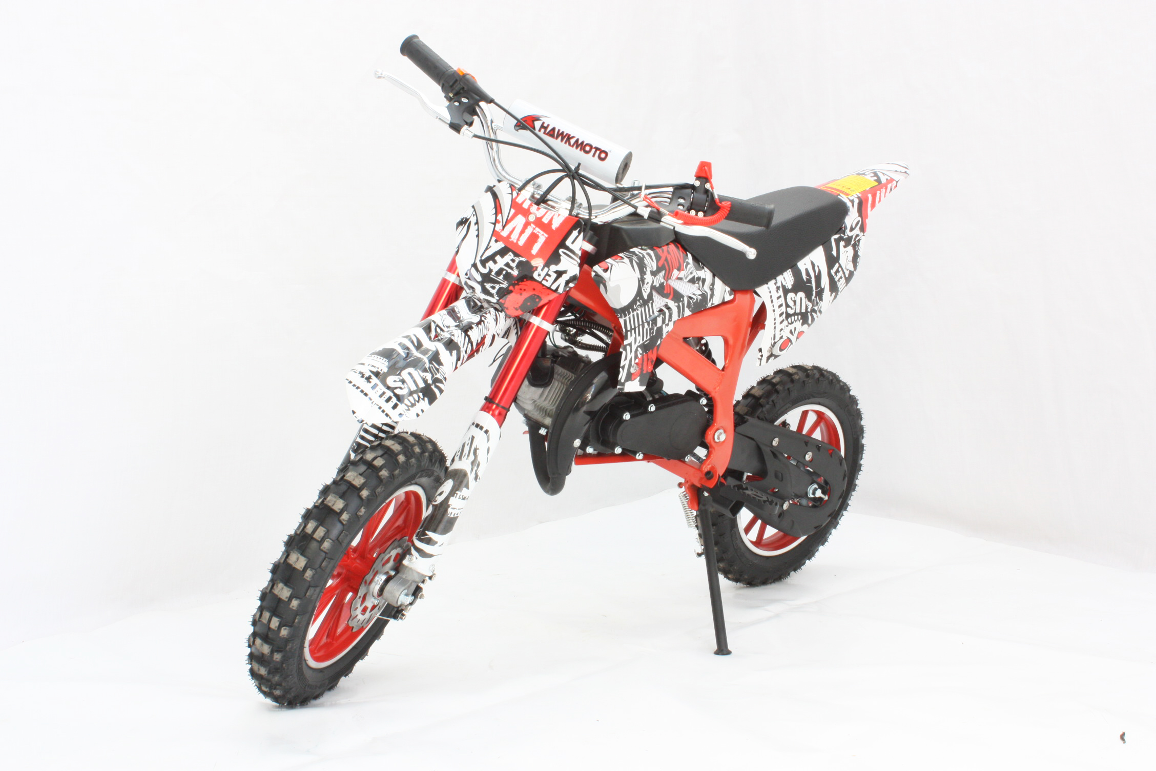 The Hawkmoto strike 50cc dirt bike Kids Dirt Bike Strike 50cc has many upgrades over the normal Mini Moto 50cc Mini Dirt bikes available including the following: