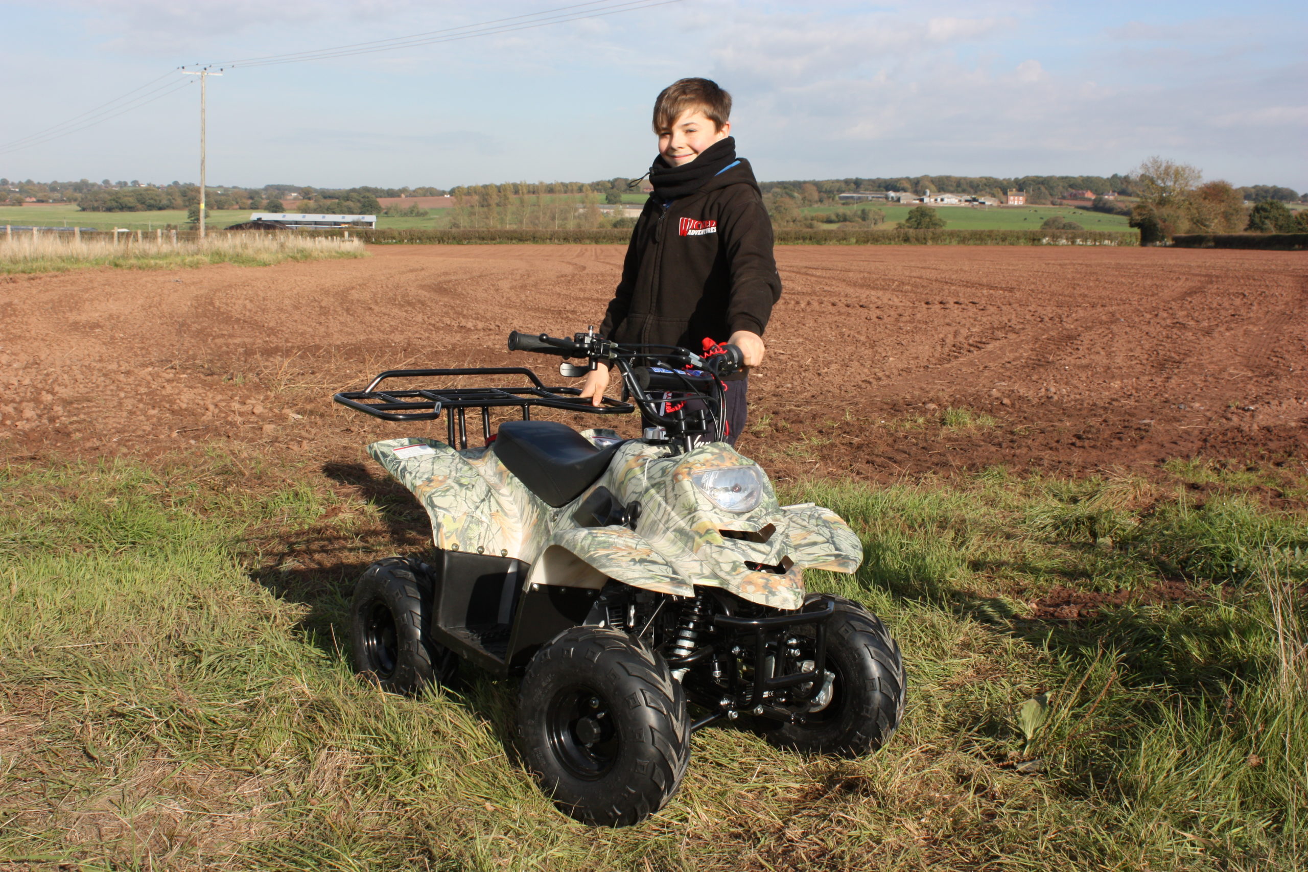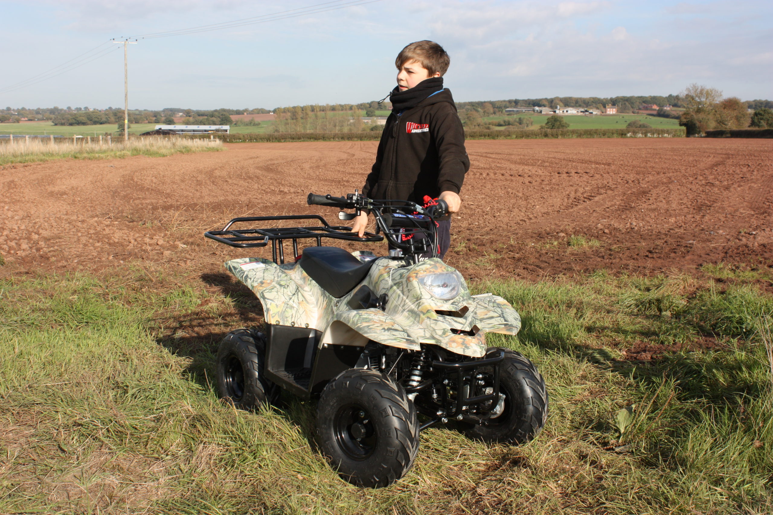 Boasting a 110cc fully restrictable engine means you can control the max speed your mini Evil Kenivil gets to, and with the added bonus of a remote cut off switch when they start to get too adventurous you have the power in your hands as Paddy would say. Point the remote at the quad press the cut off switch and the bikes comes to stop.