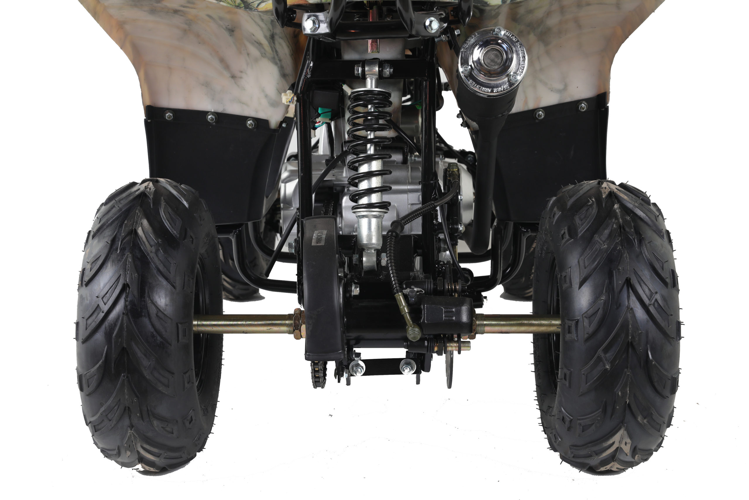 Chain tension must be done with the rider on the quad bike as each rider weight will change the chain tension needed.