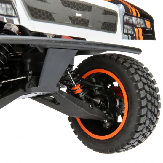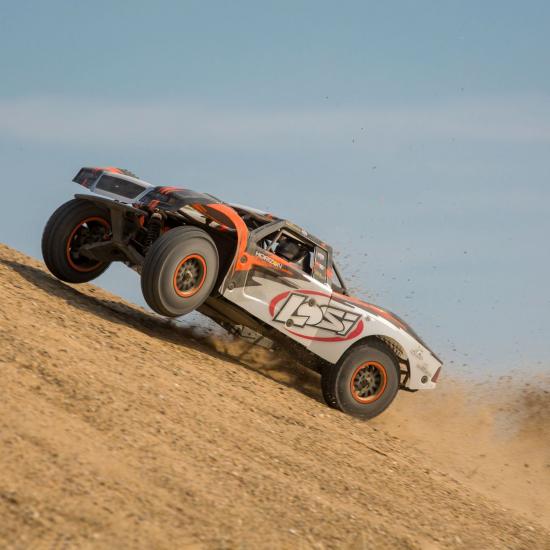 The Losi® Baja Rey™ desert truck is built on one of the most advanced chassis ever conceived for an off-road vehicle. It comes equipped with a Dynamite® 3800Kv brushless power system, as well as a long-travel suspension, so you tear across all types of terrain at speeds of 45mph or more! And you’ll do so with the full-throttle freedom that only AVC® technology can provide.
