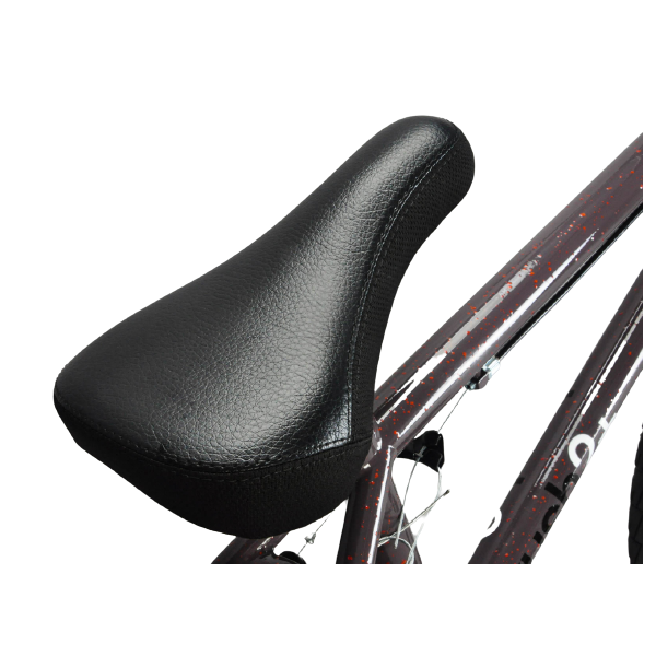 It benefits from a padded seat with integral alloy post and plastic pedals