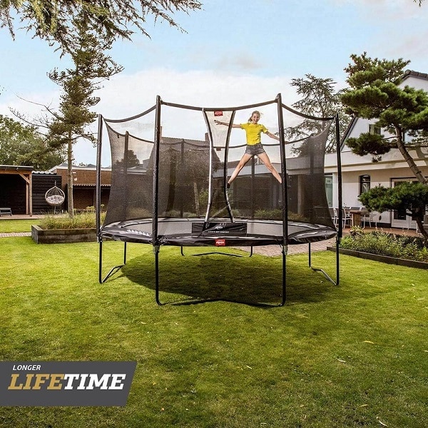 This trampoline has been developed with great care and attention. This has ensured that the BERG Favorit 430 Trampoline Grey is a safe trampoline of excellent quality.