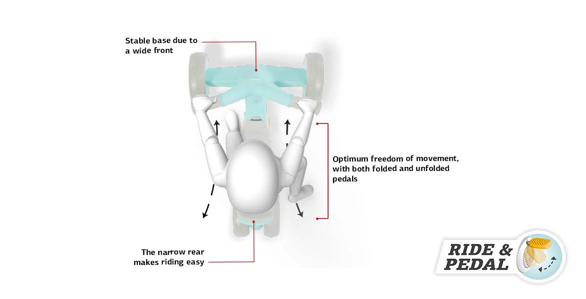 Due to its design, your child can easily use the BERG GO² as a push car without the pedals or the rear wheels getting in the way. Fold down the pedals when your child is ready for the next stage. Your tiny tot can then enjoy riding around on the BERG GO².
