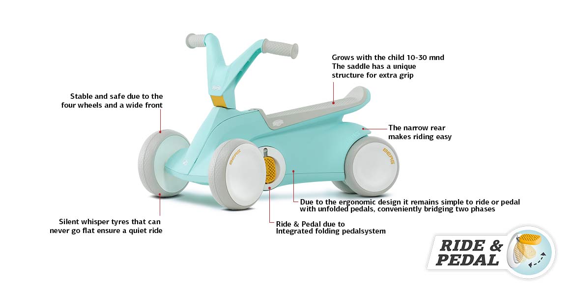 • Learn to scoot and pedal with the BERG GO2 Mint. In short, 2 in 1!