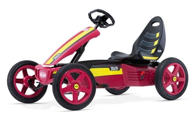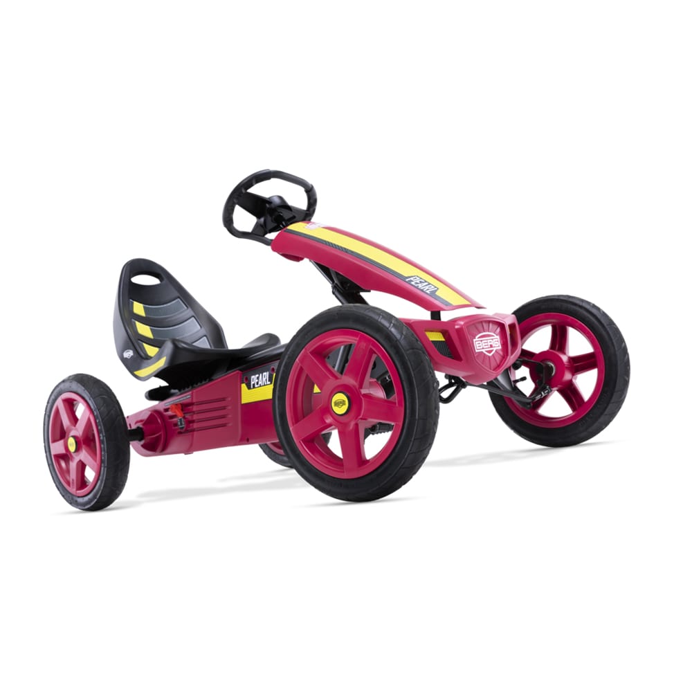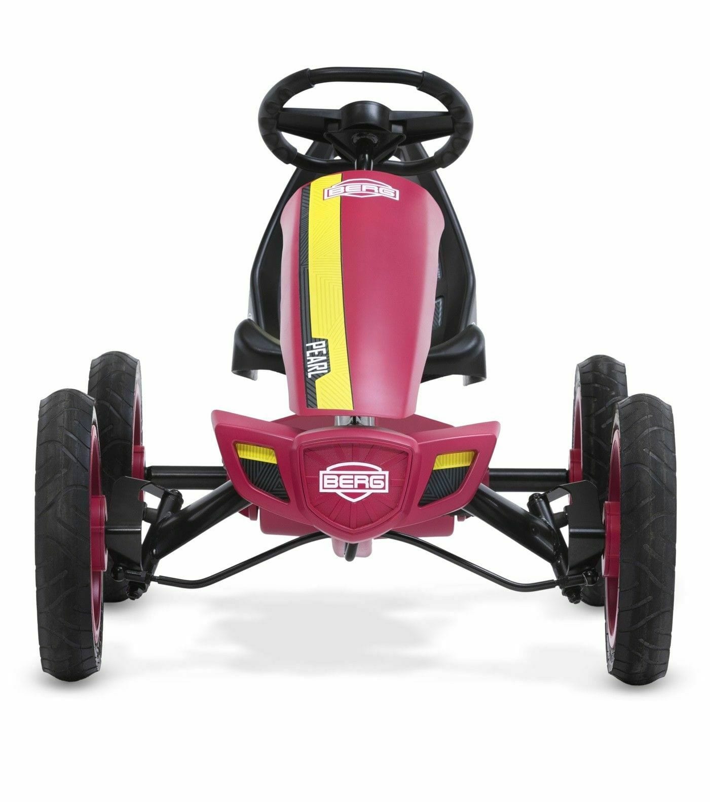 The Berg Rally Pearl Kids Pedal Go Kart has the exciting colour combinations and compact design of a real eye-catcher in the neighborhood! The go-kart has a small turning circle, making it very maneuverable. The Berg Rally Pearl Kids Pedal Go Kart is equipped with the BFR system. With the BFR system, you can drive forwards, brake but also reverse by simply pedalling forwards and backwards. The Rally is fitted with 4 pneumatic tyres which enable you to drive around quietly and comfortably. Together with the swing axle, this makes the go-kart stable and safe. The Pearl is suitable for children aged 4-12.