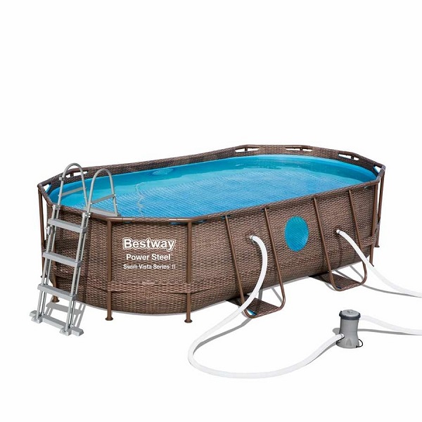 Bestway 56714 14ft Swim Vista Oval Swim Pool is perfect for cooling down and chilling out during scorching summer months, practicing backstrokes at the weekend or entertaining guests after a barbecue buffet of bangers, burgers and crunchy salads.