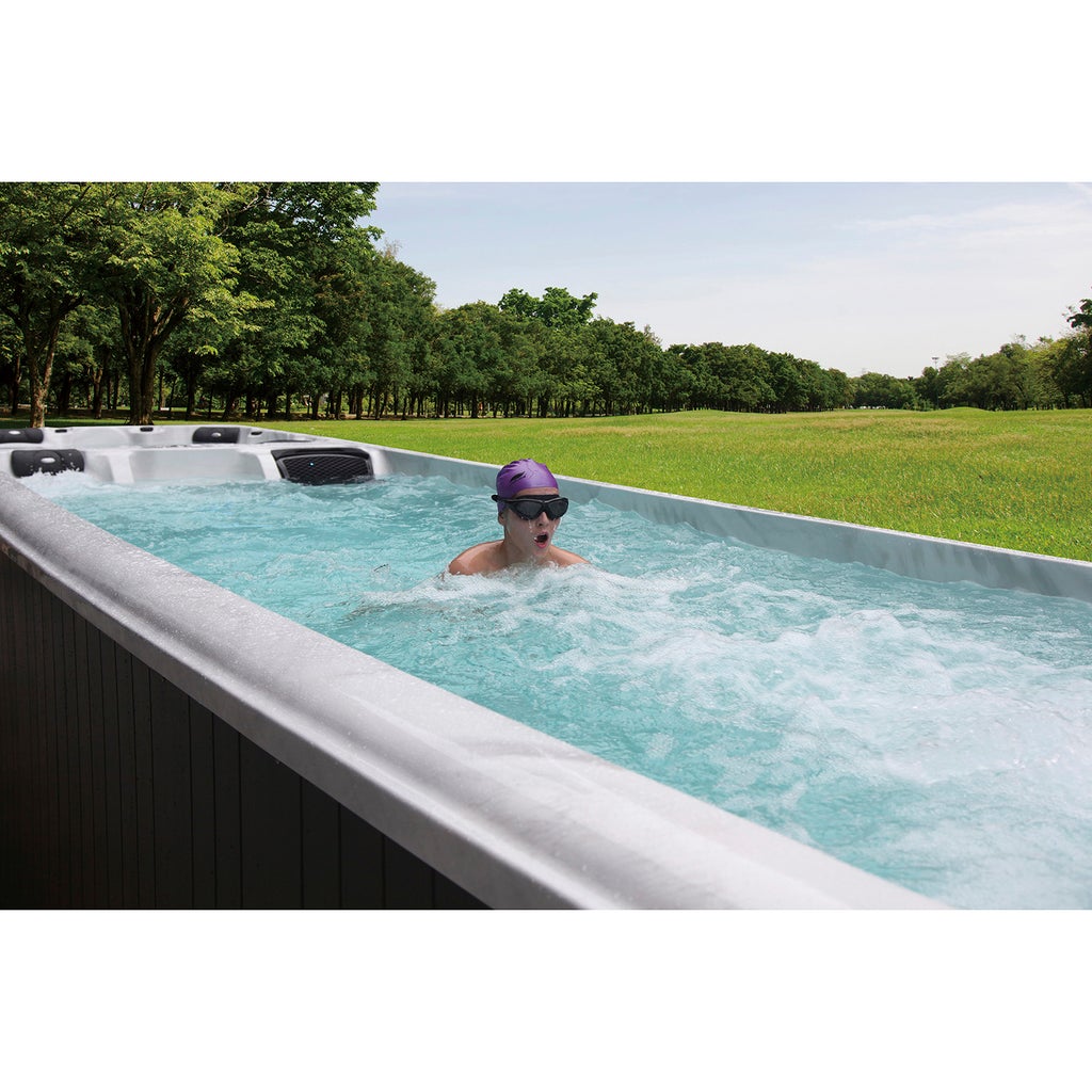 Experience the smooth, fully adjustable Canadian Spa swim current driven by our new propulsion system. You can adjust the speed from a gentle breaststroke to a challenging 1:08/100-yard swim pace. If you’re serious about swimming and fitness, this 29ft Swim Spa E-Trainer model delivers a premium option.