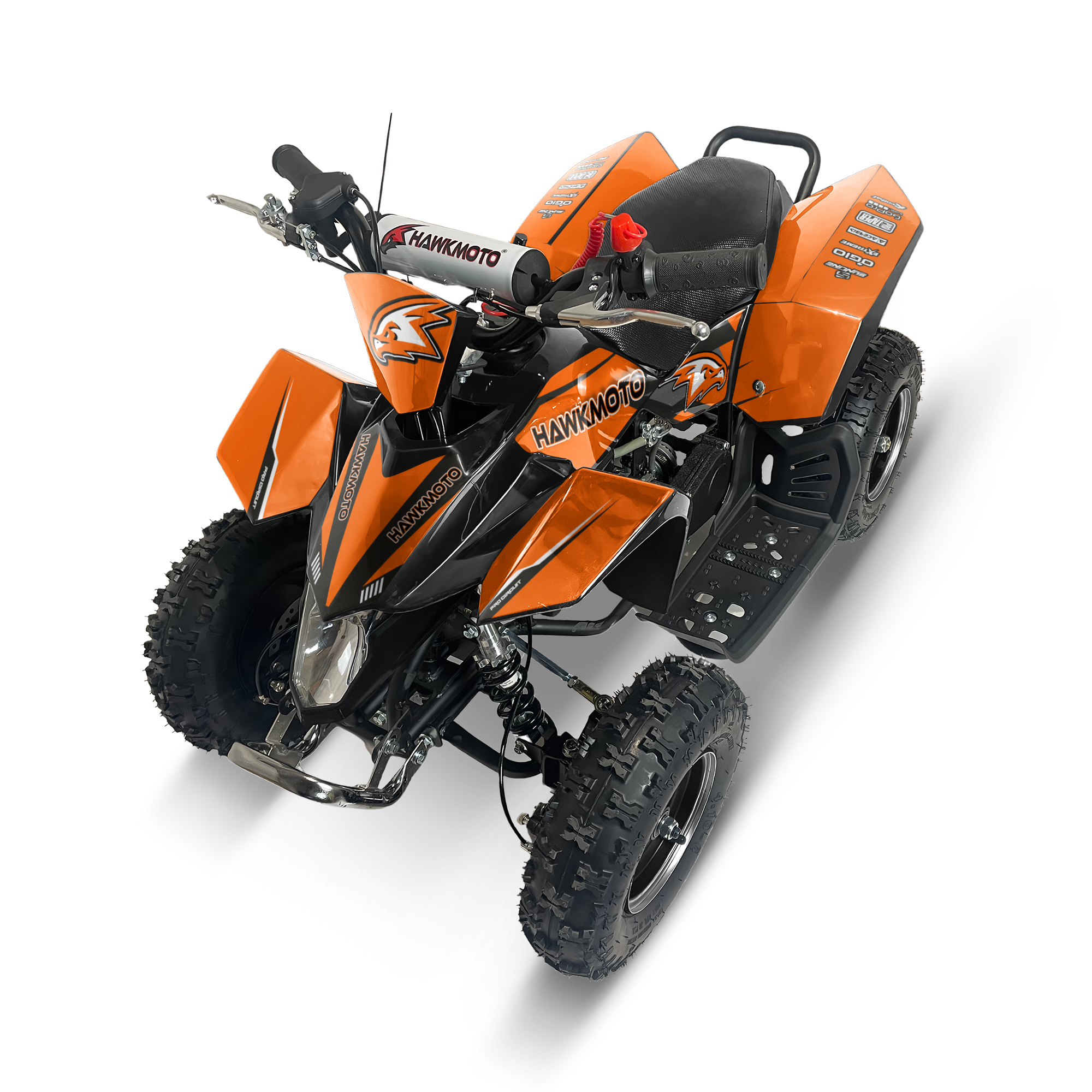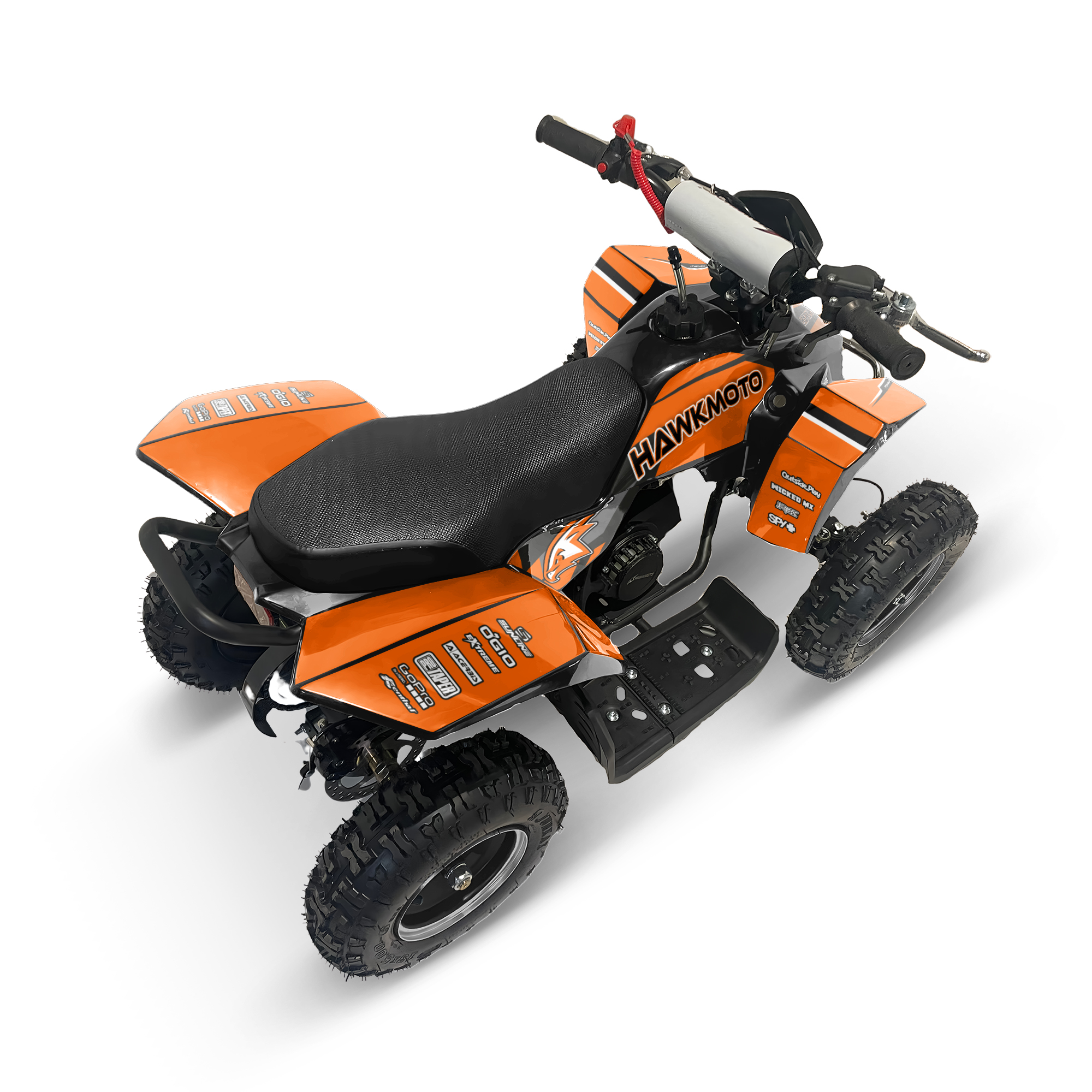 The 2025 Hawkmoto Farm Style 49cc / 50cc V2 Mini Quad Bike For Kids is here, with new upgraded features and uniquely designed graphics kits!