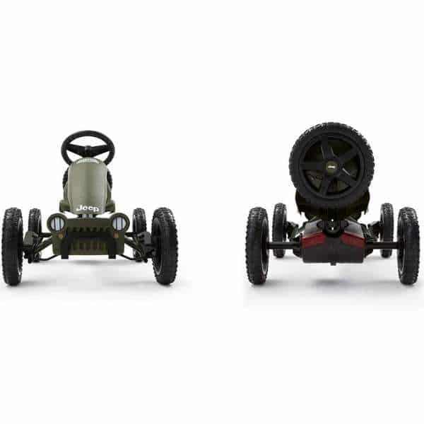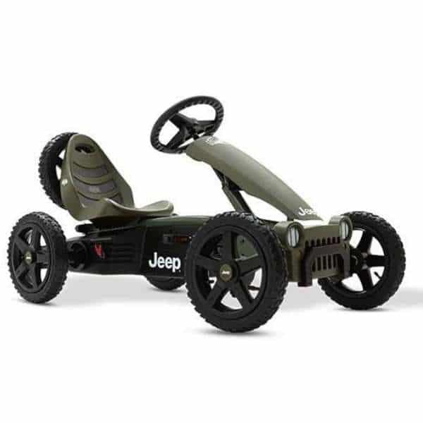 Everyone will be envious when you whizz past on this beautifully-designed go-kart. The Jeep® Adventure is a light and compact go-kart letting you travel the narrowest paths with ease. The unique BFR system ensures that you can brake with your pedals, and after coming to a halt, you can immediately pedal backwards!