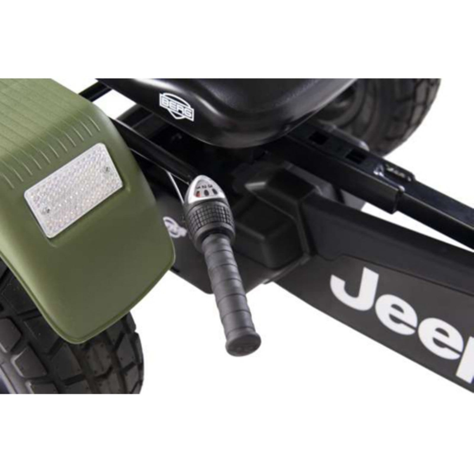 The Jeep Revolution BFR-3 is a sturdy go kart with no fewer than three gears, back-pedal brake and unique system that allows you to pedal both forwards and backwards. Thanks to the double ball bearings steering is extremely light, making you manoeuvrable in every curve.