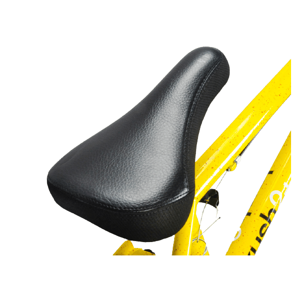 It benefits from a padded seat with integral alloy post and plastic pedals