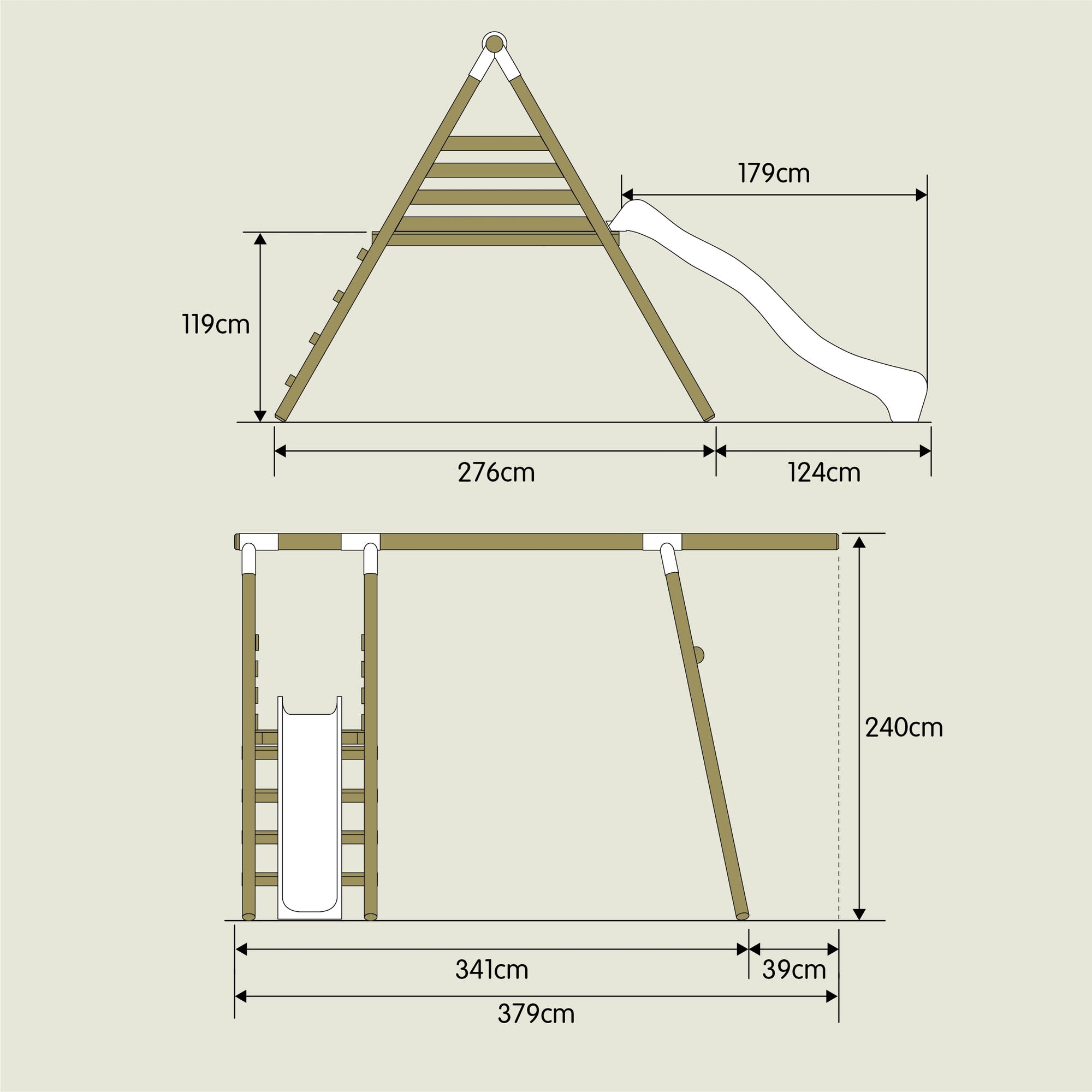 379x400x240(h) cm (including slide) Height to platform 119cm