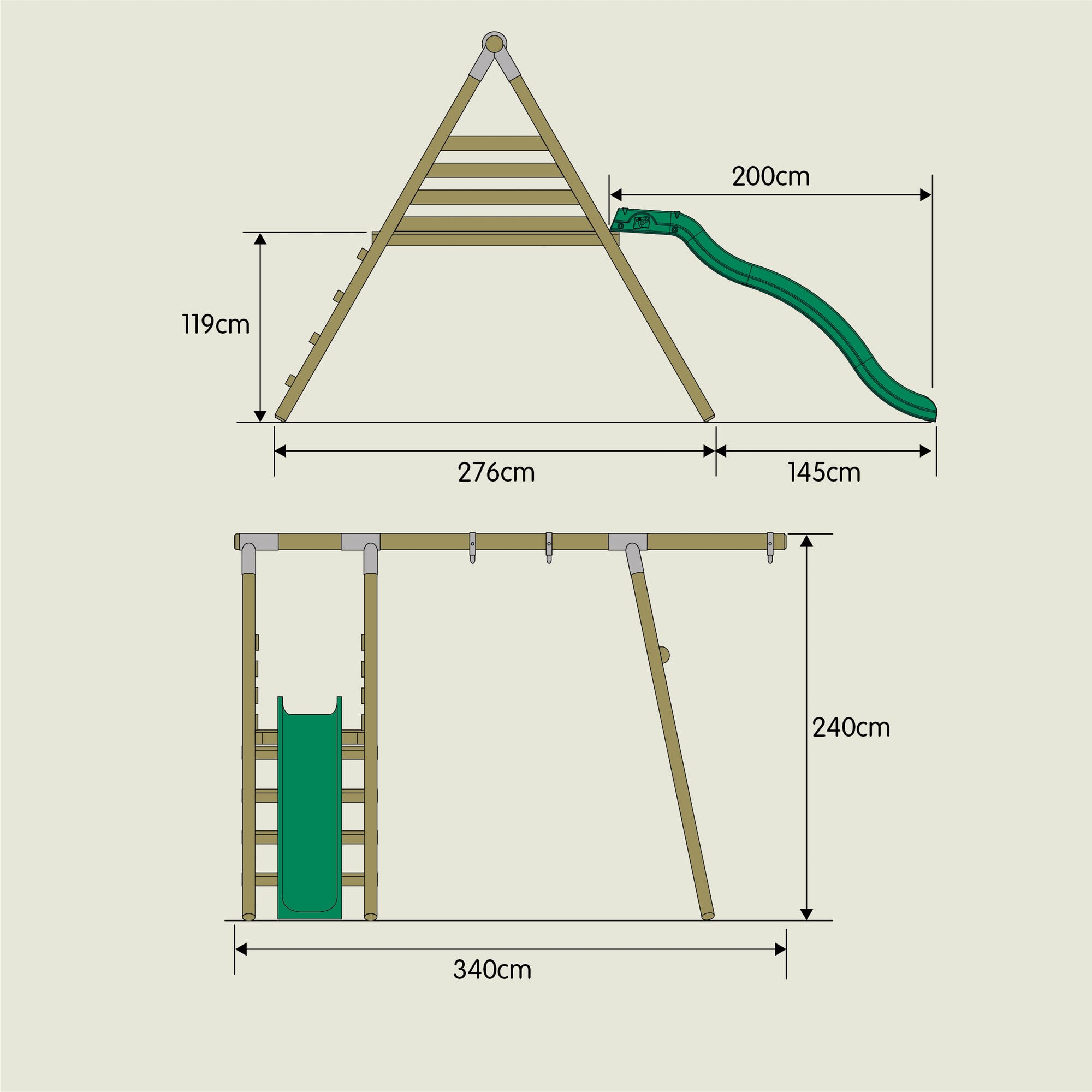 340x421x240(h) cm (with slide fitted) Height to platform 119cm
