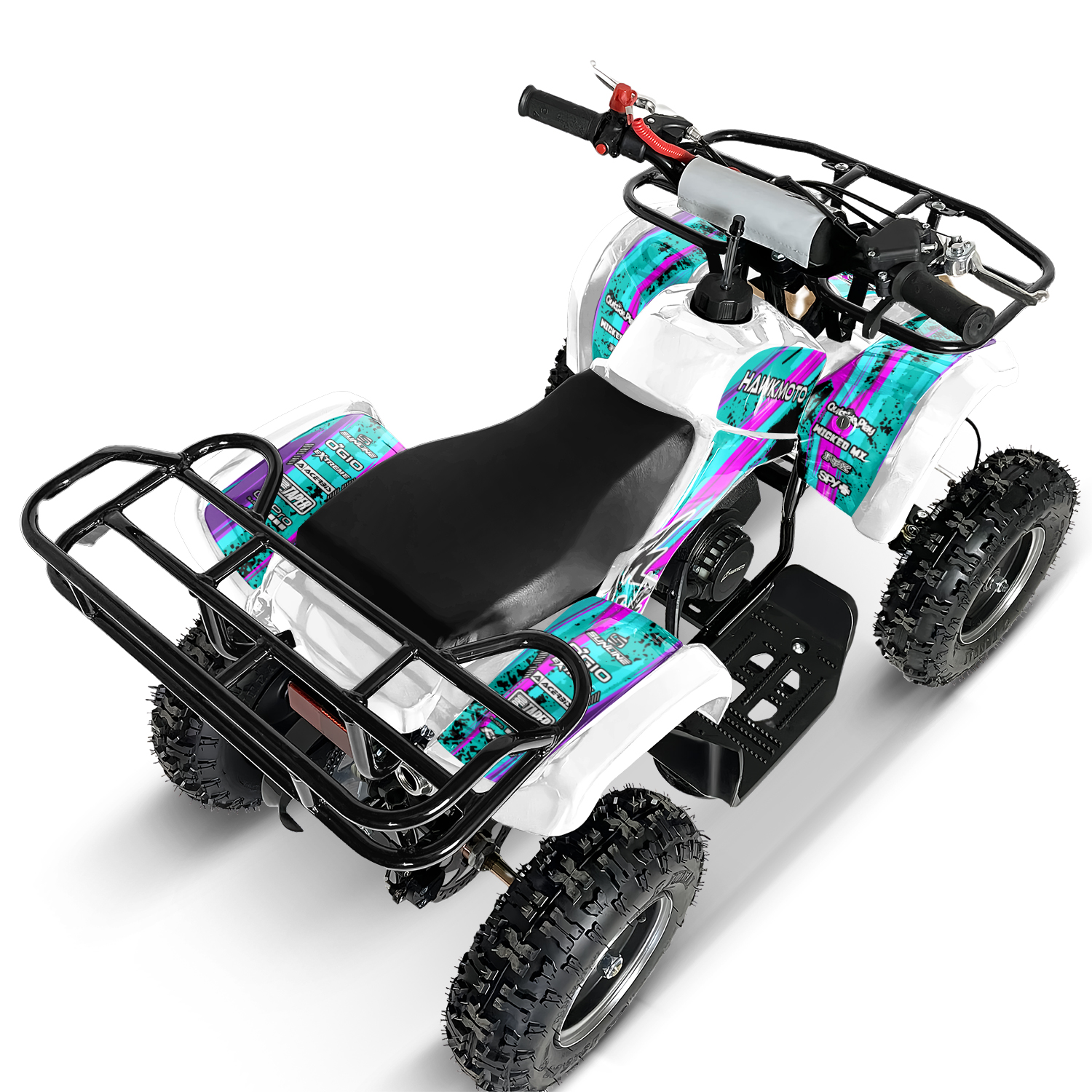 The 2024 Hawkmoto Farm Style 49cc / 50cc V2 Mini Quad Bike For Kids is here, with new upgraded features and uniquely designed graphics kits!