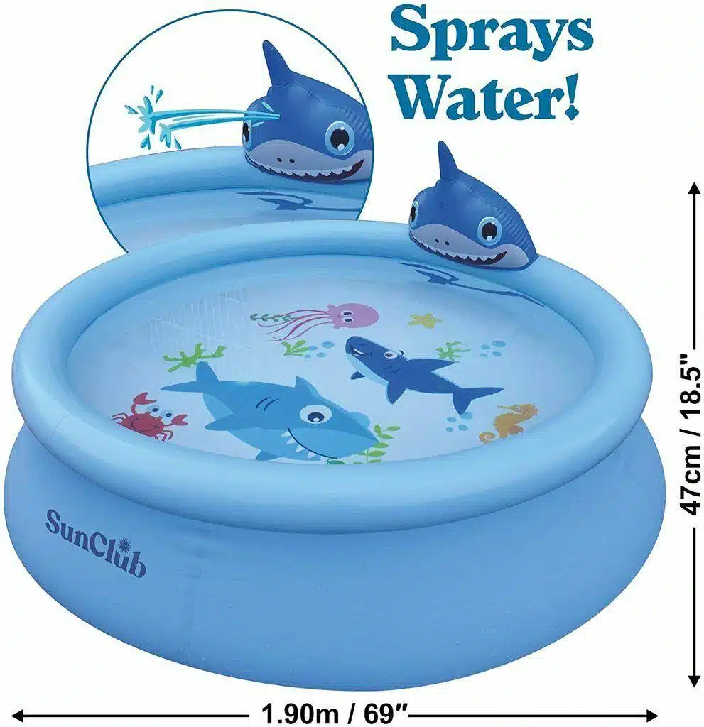 To set up, inflate the top ring, and fill with water.