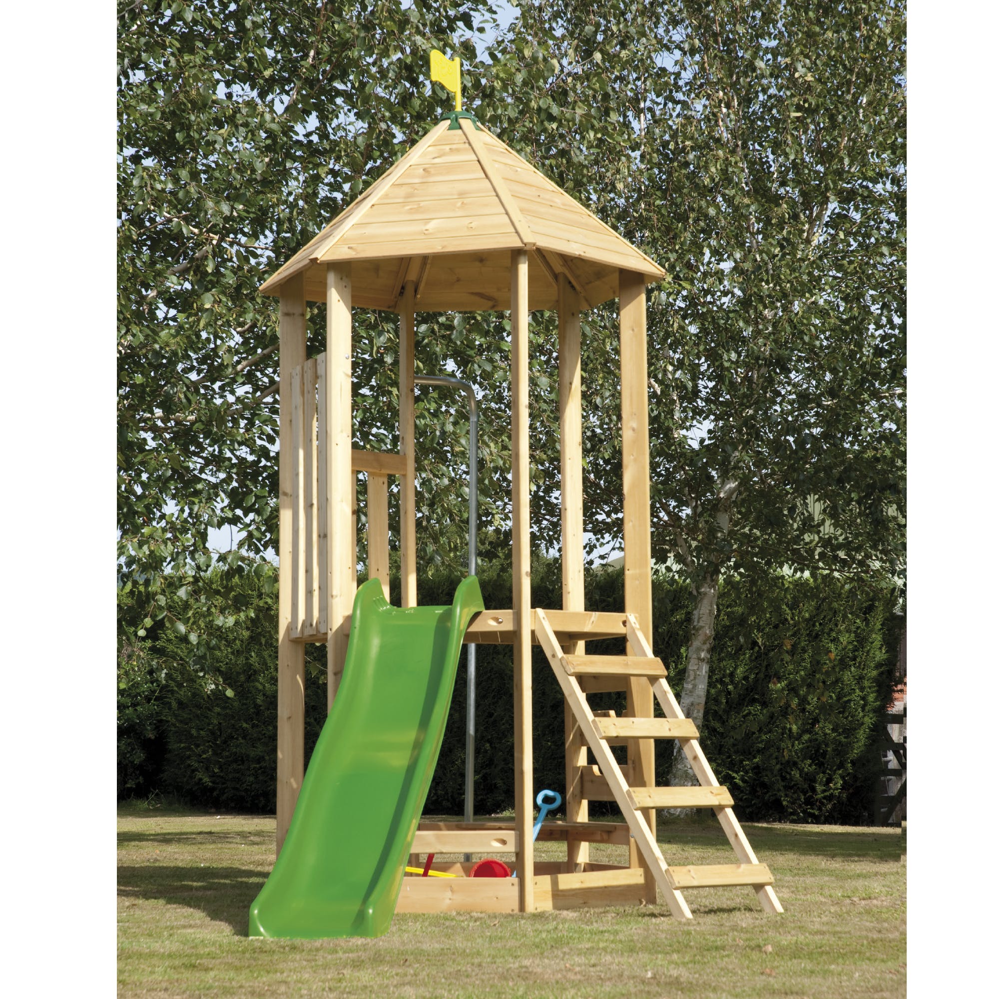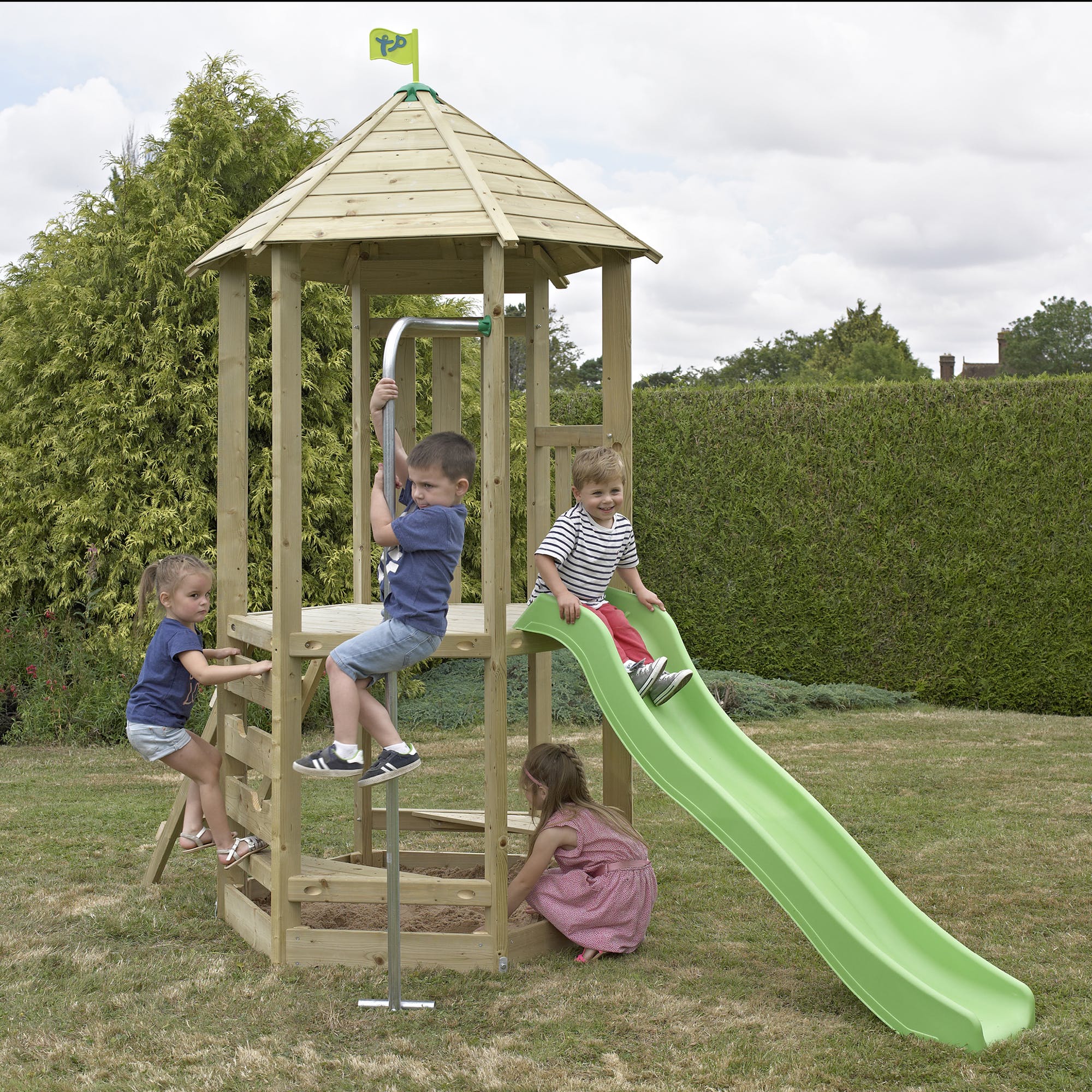 The beautiful hexagonal design of the TP castlewood fits perfectly in your garden, and is designed to last years of active fun. This set includes a Castlewood Tower and Wavy Slide.