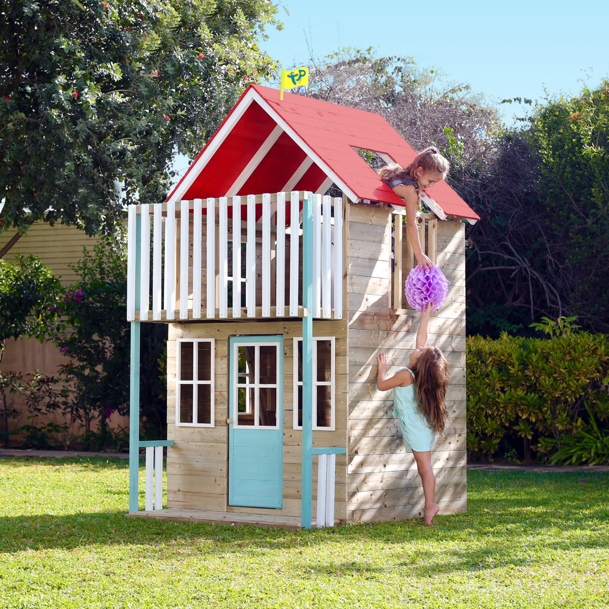 - This two level playhouse is made from FSC® certified European timber.