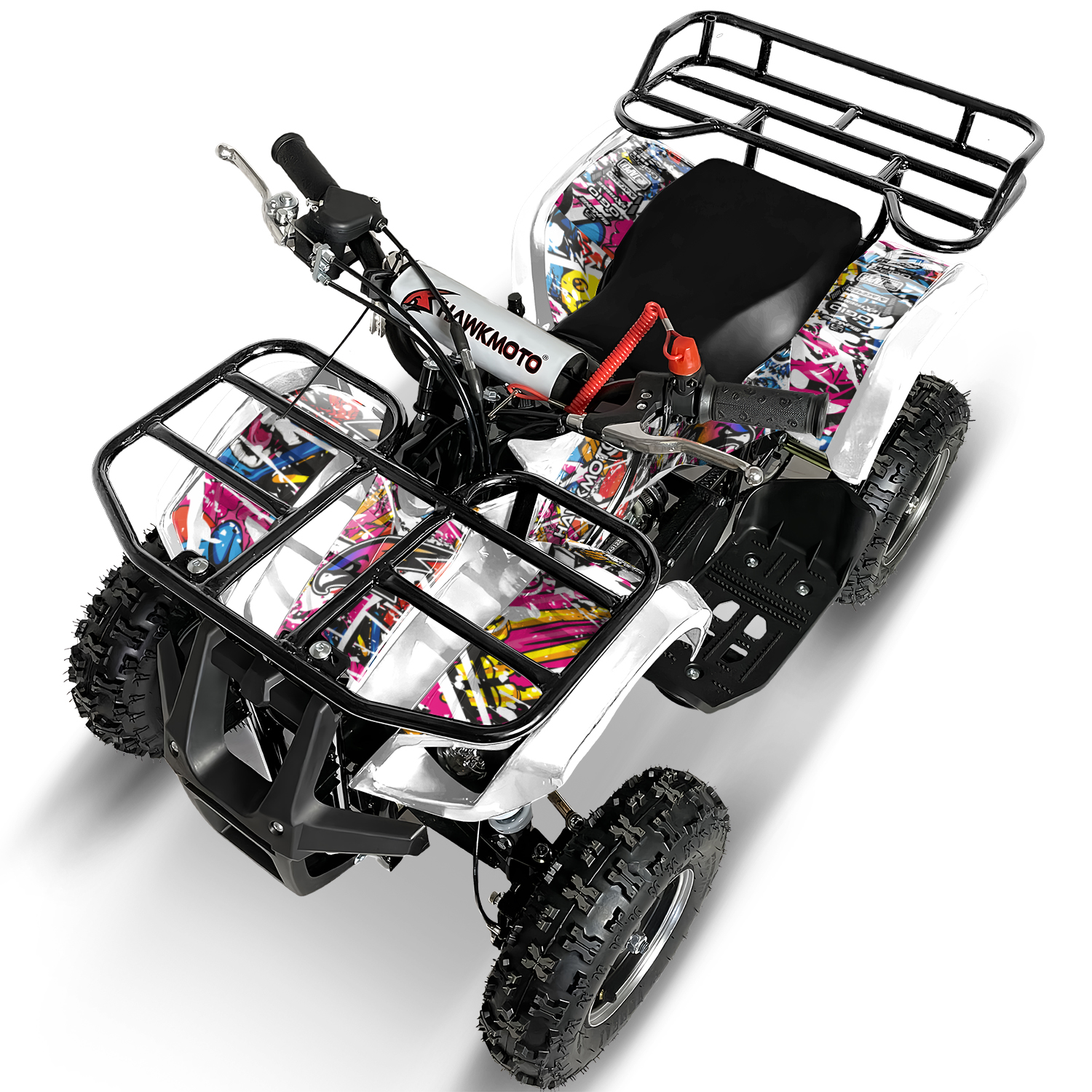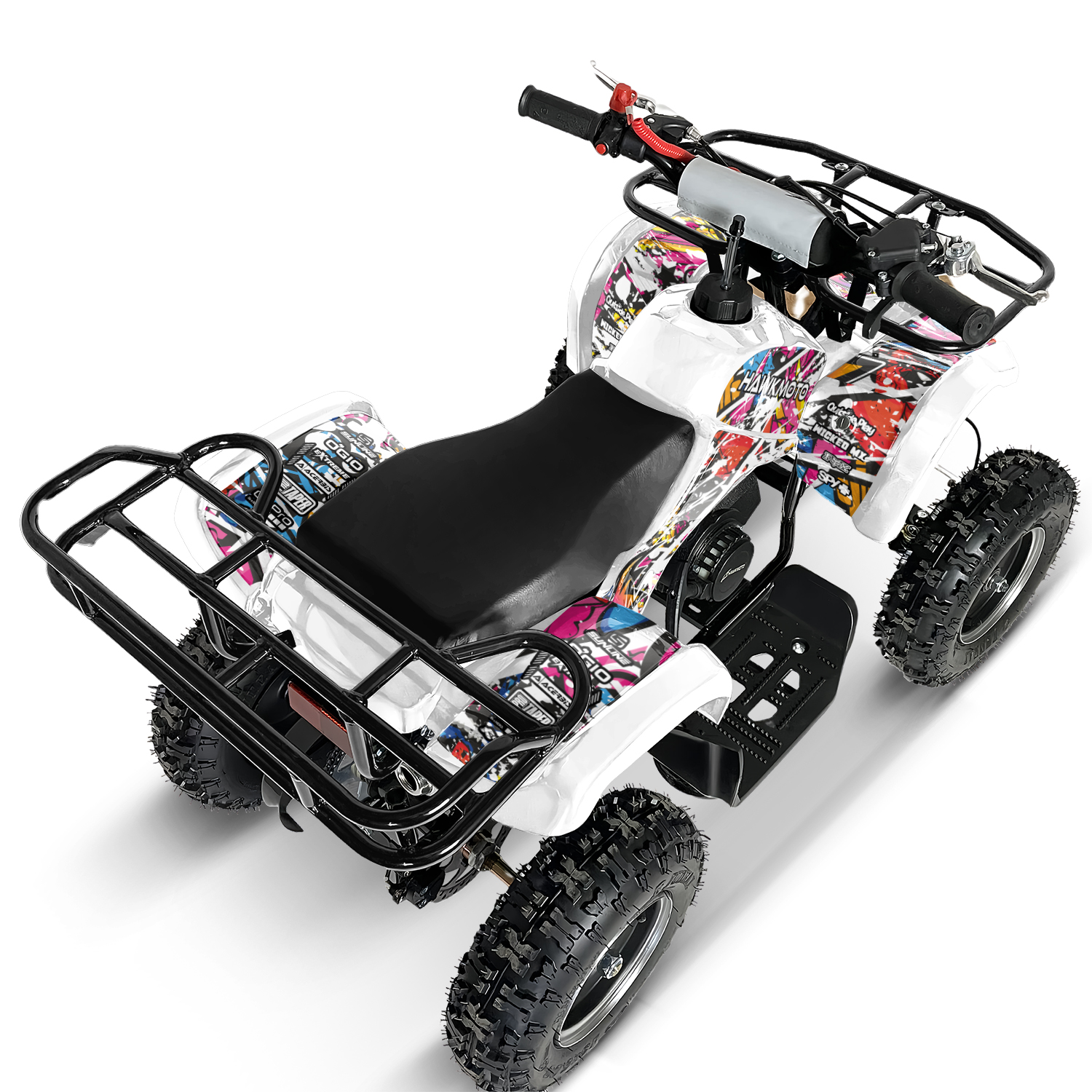 The 2024 Hawkmoto Farm Style 49cc / 50cc V2 Mini Quad Bike For Kids is here, with new upgraded features and uniquely designed graphics kits!