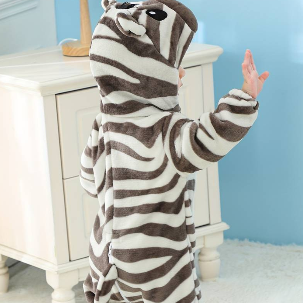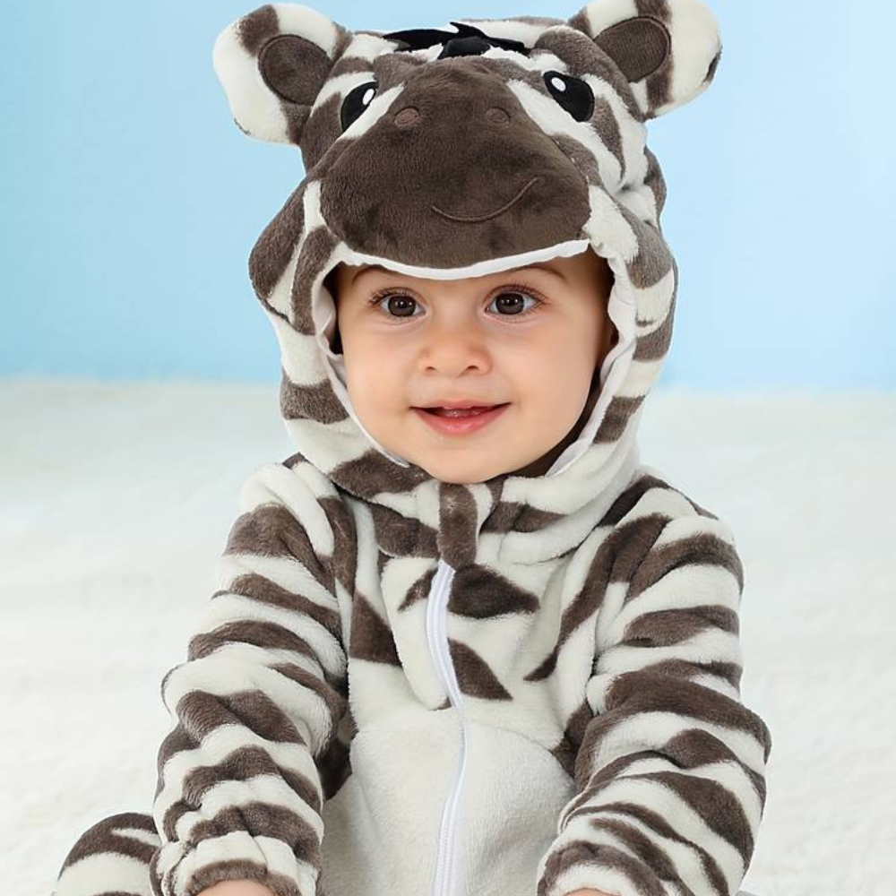 Great quality, and true to size, the Zebra Baby Romper is hooded. It’s full length zip down the front is practical and offers top and bottom zip positions, ideal for those awkward nappy changes